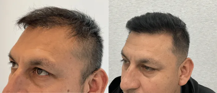 En The Hair Company usamos la técnica FUE, que solo prepara discretamente la zona donante y mantiene el cabello de la parte superior casi intacto.