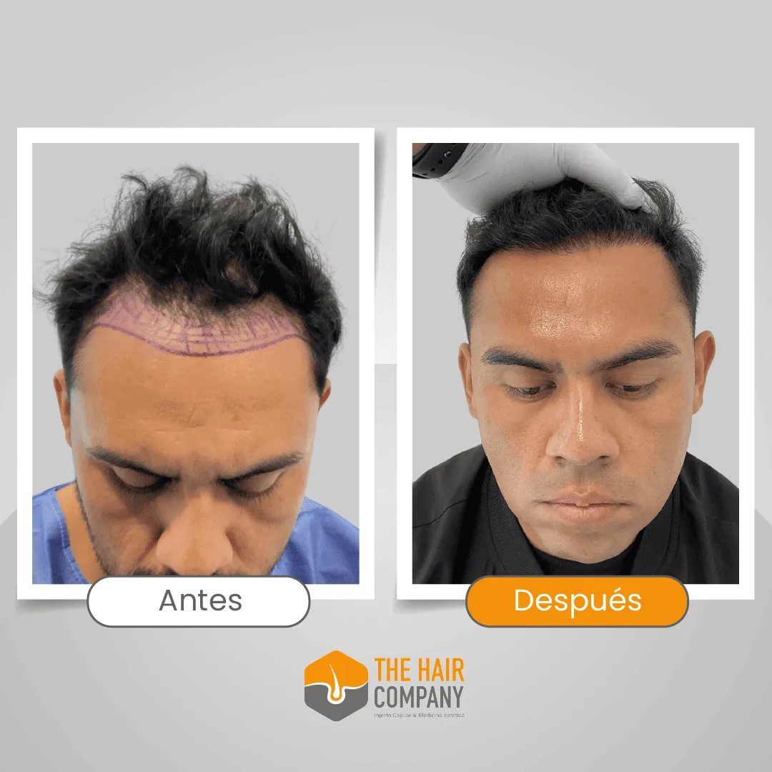 En The Hair Company usamos la técnica FUE, que solo prepara discretamente la zona donante y mantiene el cabello de la parte superior casi intacto.
